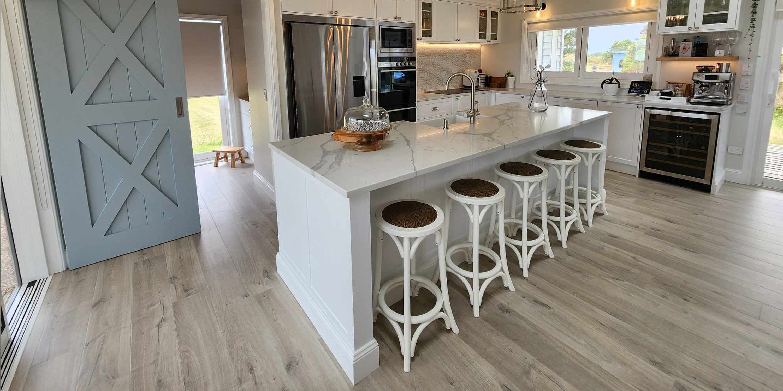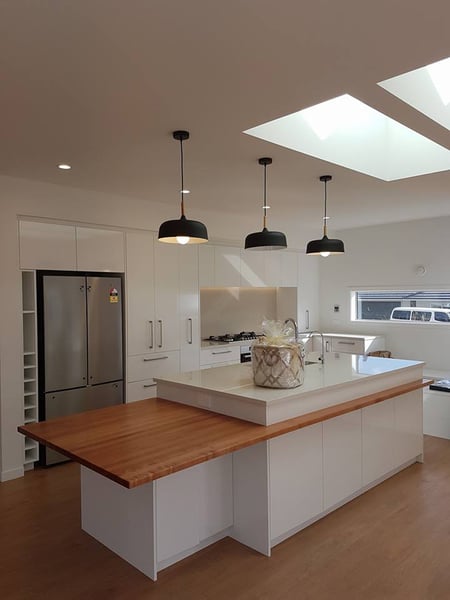 With internal pantry fitting options, electronic or architectural drawers, Caesarstone, stainless steel or high range granite benchtops, cabinet and back panel decorative lighting, and a printed glass splashback, the Ultimate Kitchen has the best of the best. Our Ultimate kitchen has a high gloss marine grade painted finish, which allows you to choose any paint colour available. With the continual innovation of accessories to make life that little bit easier, the Ultimate kitchen has no limits except your budget!