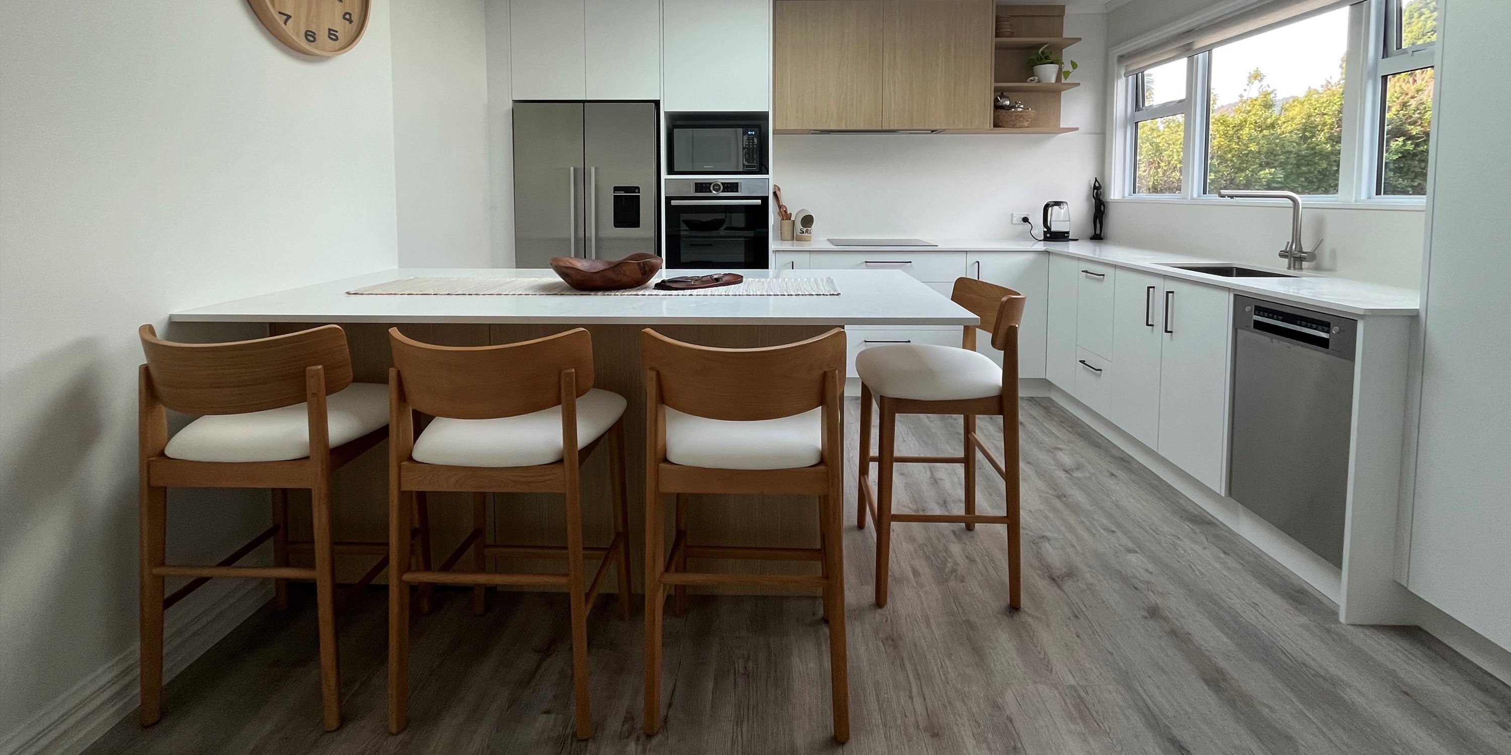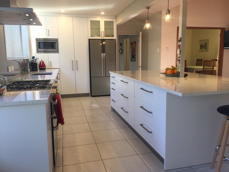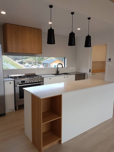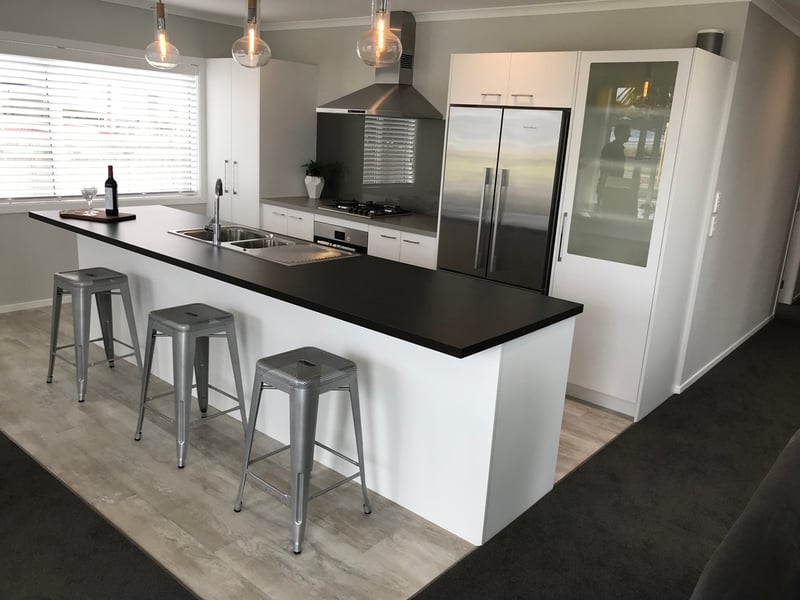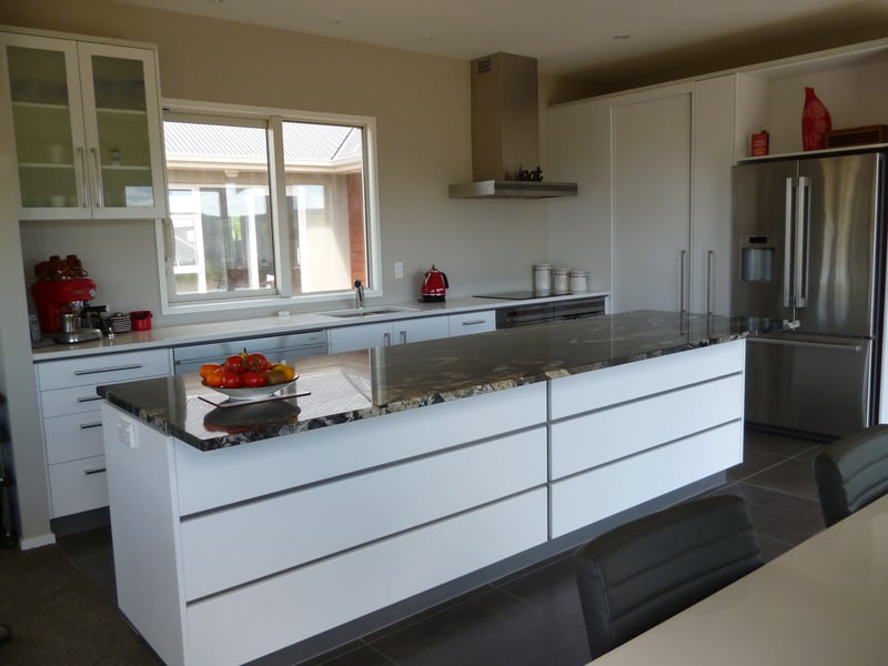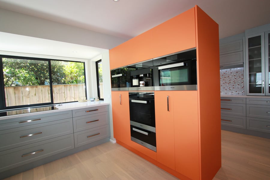 It's the next step up in finishes including but not limited to Dezignatek thermoformed doors and panels in a huge variety of finishes, styles and colours; a granite, composite stone or stainless steel benchtop; recycling double pull out bins; overhead cabinets; and internal drawer fittings.